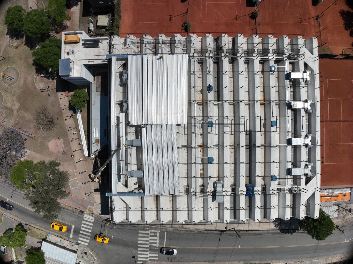 Durante años, el estadio presentó problemas de filtraciones provocados por cañerías pluviales antiguas y obstruidas, además de fisuras en la losa existente. En este sentido, Arquitectura ejecutó en múltiples instancias tareas de impermeabilización, con diversos métodos, lo que logró la reducción significativa de filtraciones. Ahora, la concreción de este sobretecho metálico brindará una aislación hidráulica total y, también, térmica en el edificio.