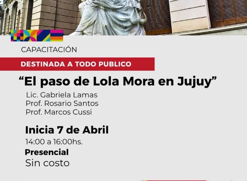 La Municipalidad de San Salvador de Jujuy, a través de la Dirección General de Turismo, invita a la comunidad a participar del proceso formativo “Conociendo la Historia”, una propuesta de capacitación gratuita orientada a profundizar en la vida y obra de la destacada escultora argentina Lola Mora y su vínculo con la provincia.
