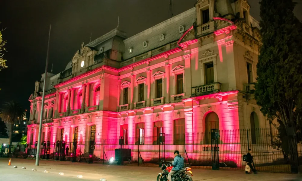 Con motivo de conmemorarse el 19 de octubre, el Día Mundial De La Lucha Contra El Cáncer De Mama, el poder ejecutivo iluminó de color rosa la fachada de Casa de Gobierno