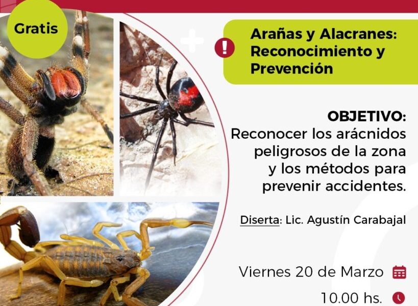 El encuentro, estará a cargo del Lic. Agustín Carabajal quien brindará información sobre las principales especies consideradas peligrosas presentes en la zona, cómo identificarlas, cuáles son sus hábitos y qué medidas de prevención se deben tomar para evitar accidentes, como ejemplo arañas y alacranes, realizando un reconocimiento y prevención.
