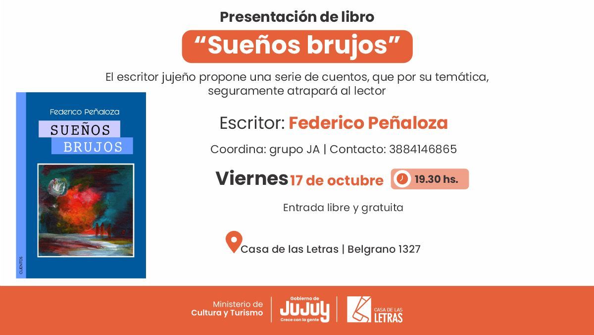 La presentación de «Sueños brujos» reunirá a lectores y seguidores de la narrativa regional en una jornada organizada por el grupo Jujeños Autores. Peñaloza, conocido por su capacidad para construir atmósferas cargadas de simbolismo, propone en esta ocasión relatos que prometen atrapar al lector desde sus primeras líneas.