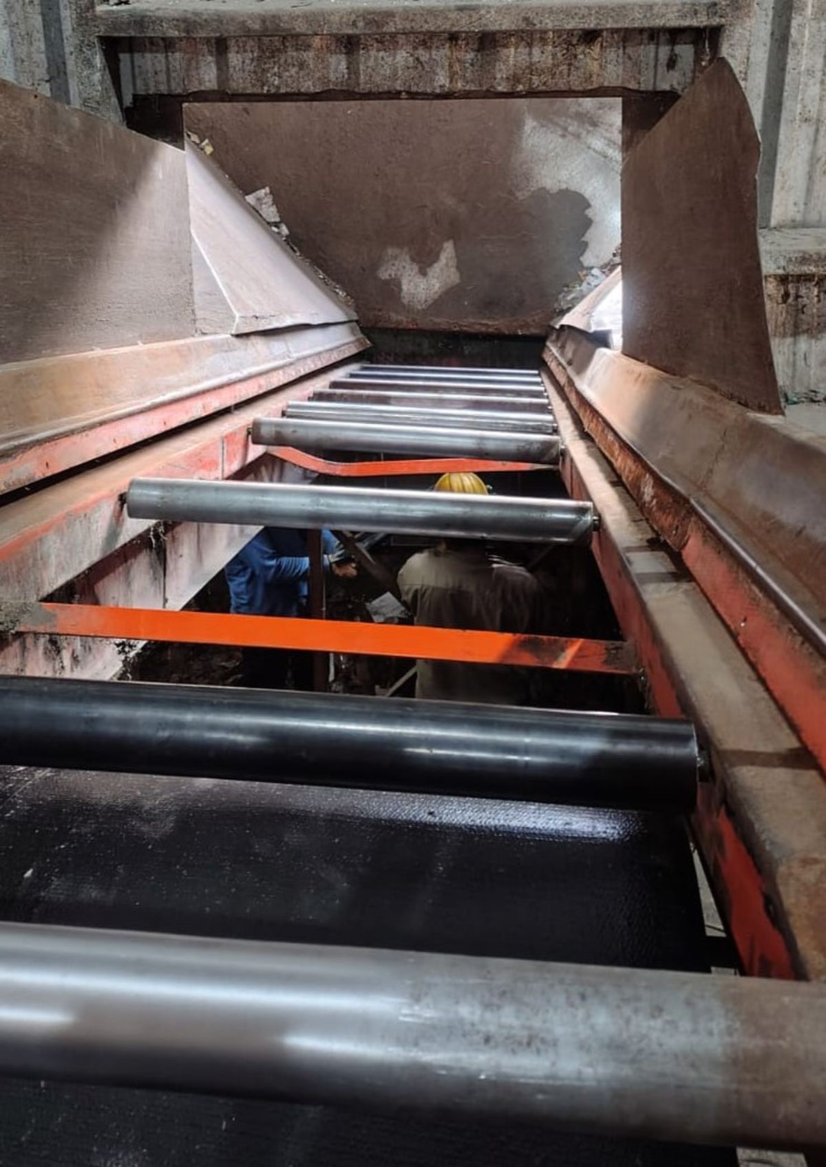 Las tareas incluyeron la intervención sobre maquinarias de gran porte, entre ellas la cinta de clasificación y la cinta de elevación —equipos de tecnología importada cuyas dimensiones superan los 68 metros de longitud—, diseñadas específicamente para el tratamiento de altos volúmenes de residuos sólidos urbanos.