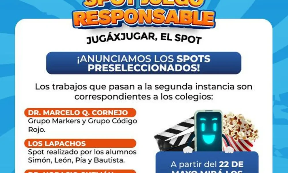 El Instituto Provincial de Juegos de Azar de Jujuy (INPROJUY) informa los resultados de la etapa de preselección del Concurso de Spot Publicitario,organizado por el Programa de Juego Responsable JugaxJugar.