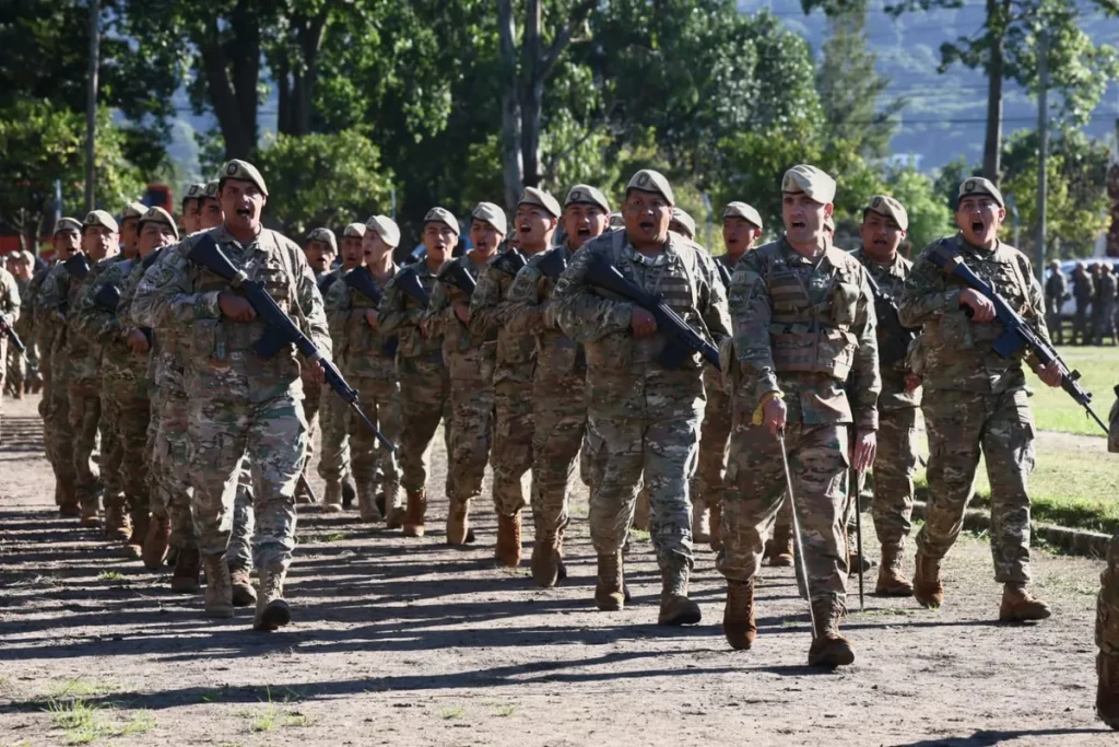 Para finalizar la ceremonia se realizó un desfile en el predio del polideportivo del Regimiento de Infantería de Montaña 20 «Cazadores de Andes».