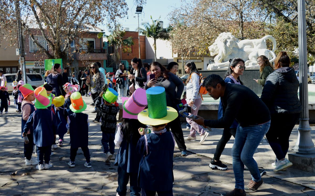 Al barrio Ciudad de Nieva, donde en su plaza Hipólito Yrigoyen está la escultura ‘Los Leones’, llegaron autoridades de la institución, educativas, familias de los niños y niñas que concurren al JIN y delegaciones de otras instituciones educativas del barrio.