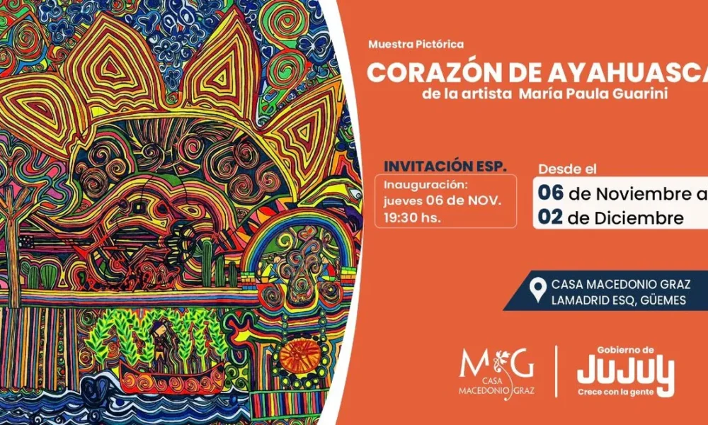 Corazón de Ayahuasca llega a Jujuy con la obra de María Paula Guarini, una propuesta que invita a un viaje visual y sensorial a través de simbolismos, naturaleza y espiritualidad.