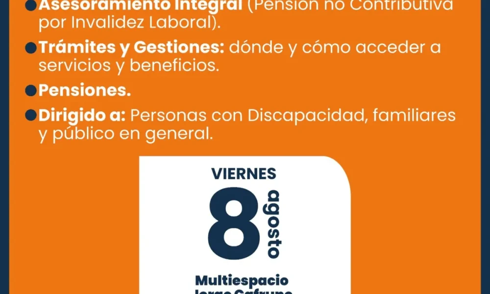 El Ministerio de Desarrollo Humano de Jujuy, a través de la Secretaría de Desarrollo Integral y la Dirección Provincial de Inclusión de Personas con Discapacidad, informa que este viernes 8 de agosto se desarrollará una nueva jornada de atención territorial mediante la Oficina Móvil de Asesoramiento y Gestión para Personas con Discapacidad.