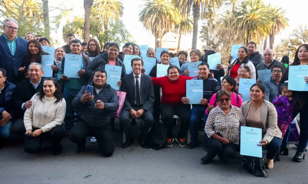 El acto, realizado en la playa de estacionamiento de Casa de Gobierno, contó con la presencia de funcionarios provinciales, el intendente de Yala, Santiago Tizón; el titular del Concejo Deliberante capitalino, Lisandro Aguiar; la escribana de Gobierno y familias beneficiarias, en una acción que reafirma el compromiso del Gobierno de Jujuy con la regularización dominial en todo el territorio.