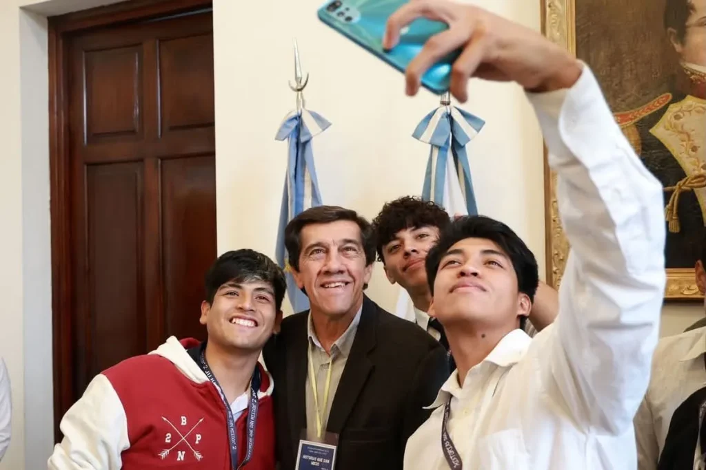 Durante la visita, que se concretó en la Casa de Gobierno, el primer mandatario se interiorizó del proyecto literario que lleva adelante la comunidad educativa y escuchó las vivencias de los chicos tras participar en esta segunda edición.