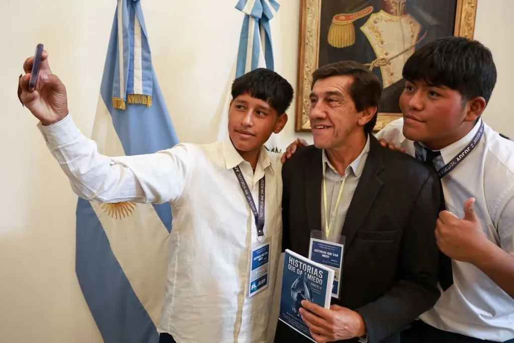 El gobernador Carlos Sadir recibió a estudiantes del Bachillerato Provincial N° 2 que participarán en la Feria del Libro de Buenos Aires con la segunda edición de «Historias que dan miedo». Acompañaron el encuentro las ministras de Educación, Daniela Teseira, y de Desarrollo Humano, Marta Russo Arriola. Además de la directora de la institución, Marta Cruz; funcionarios del área educativa; docentes y alumnos.