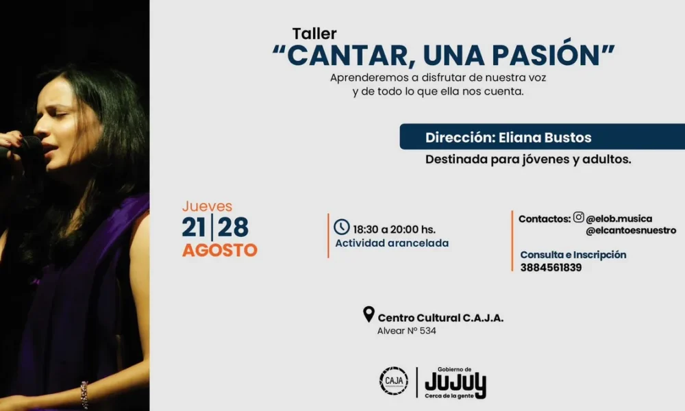 “Cantar, una pasión” forma parte de la programación cultural impulsada por el Gobierno de Jujuy, y busca fomentar el arte como práctica vital y accesible. La propuesta se complementa con espacios de escucha, ejercicios prácticos y dinámicas de grupo.